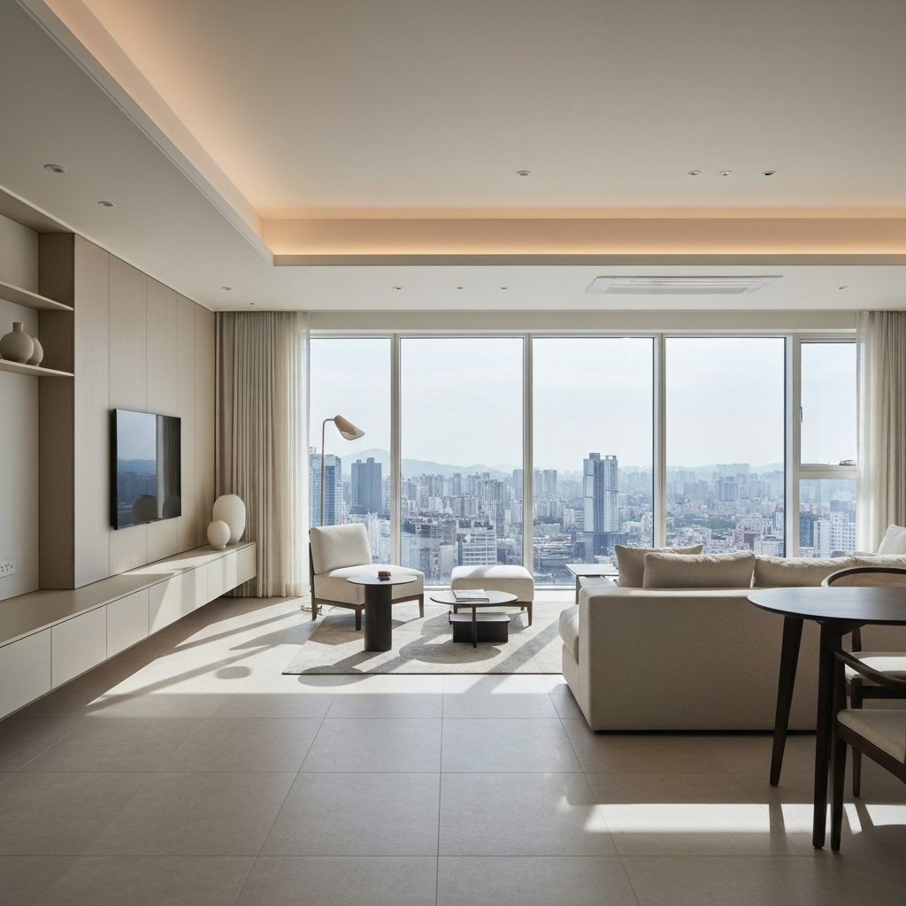 공간 활용을 극대화한 현대적인 거실 설계. 채광, 동선, 수납을 한번에 해결합니다.